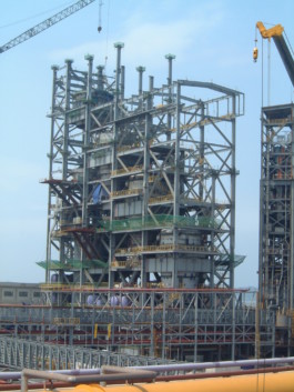3 Reaktoren im Turm mit jeweils max. 2.500 Tonnen Betriebsgewicht in verschiedenen Höhen